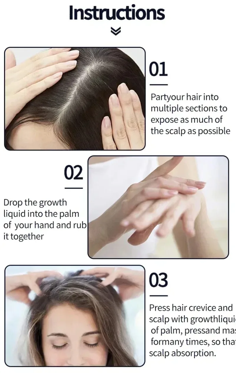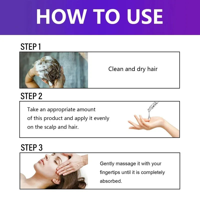 ▶Usage: Evenly smear essence on the scalp hair root after shampoo, and massage the scalp Apply it every night before going to bed. It can be used many times.