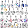 2026 Hot Sale Charms Bead 925 Sterling Silver Pink Butterfly Luminous Firefly Dangle Fit Bangle Bracelet Necklace DIY Jewelry