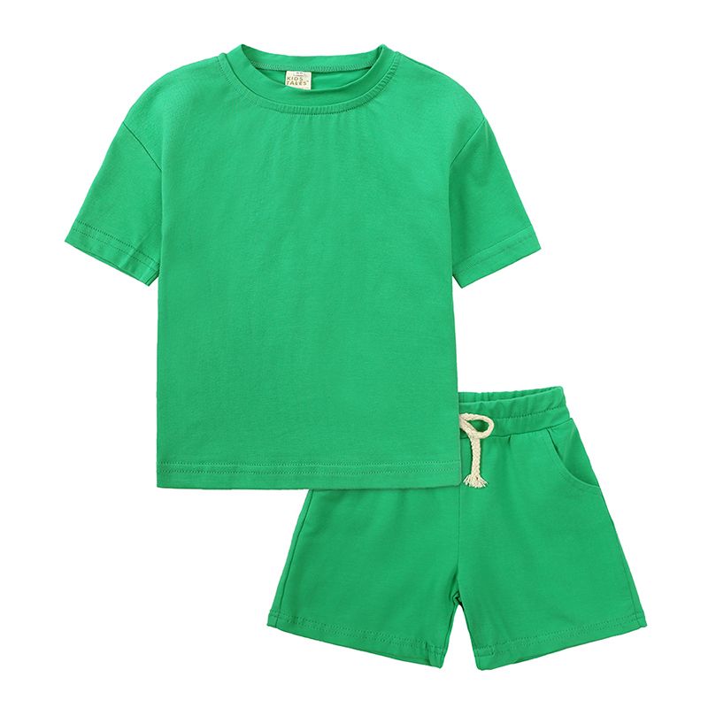 2026 Infant Boys Girls Summer Sport Clothes Kids Solid Color Cotton Casual O-neck Short Sleeve T-Shirt + Shorts Children Outfits