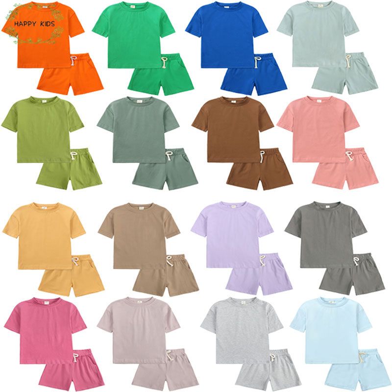 2026 Infant Boys Girls Summer Sport Clothes Kids Solid Color Cotton Casual O-neck Short Sleeve T-Shirt + Shorts Children Outfits