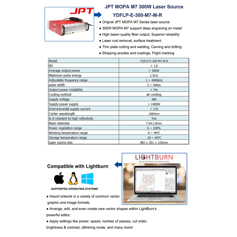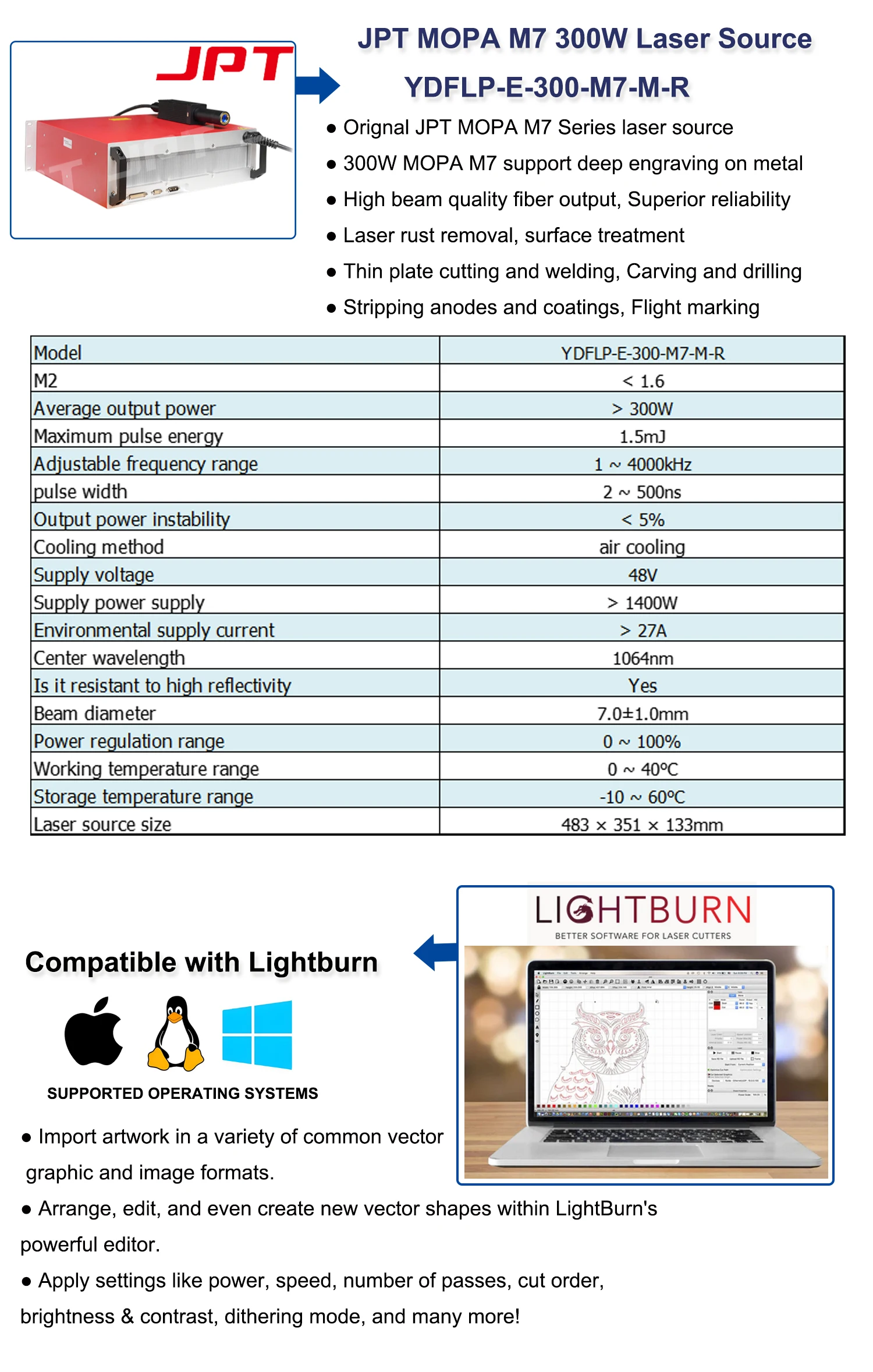 2026 JPT MOPA 300W E M7 Fiber laser marking machine 200*200mm Quartz lens Deep engraving cutting machine on Coin metal US ship