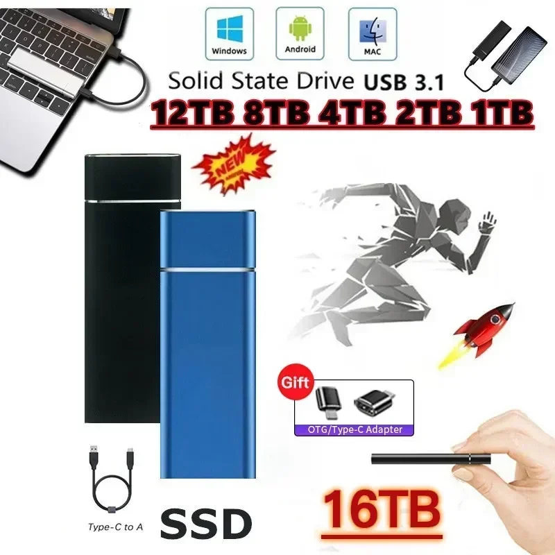 2025 New Portable SSD Type-C USB3.1 2TB External Mobile Solid State Drive 8TB High Speed 1TB Hard Drive For Laptop Mass Storage Package Included: 1 x External SSD Hard Drive Disk Specifications: Type: External SSD Hard Drive Disk Material: Aluminum Alloy Size: Approx. 1.8'' Colour: As Picture Shown Suitable For: For Windows XP / Vista / 7 /8/ 8.1/ 10, operating system X 10.6 and Linux kernel 2.6, Mobile devices that support OTG are compatible with system Android 5.0 and later Features: 1. USB 3.1 High Speed Transmission High transmission speed is suitable for applications with large amounts of data and fast file transmission. The reading speed is as high as 30 MB/s and the writing speed is as high as 37 MB/s;