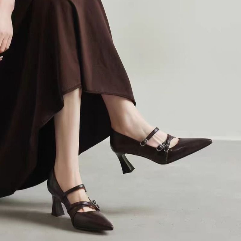 2026 Metal Buckle Hollow Sandals Office girl Pointed Thin Heel Patent Leather Fashion Single Shoe 35-42 Big Size Women Shoes