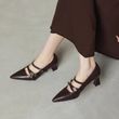 2026 Metal Buckle Hollow Sandals Office girl Pointed Thin Heel Patent Leather Fashion Single Shoe 35-42 Big Size Women Shoes