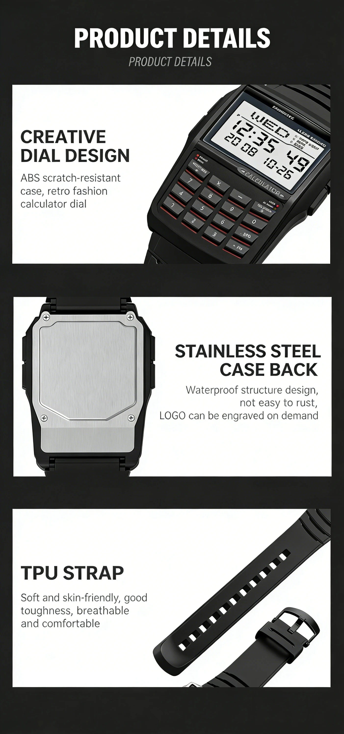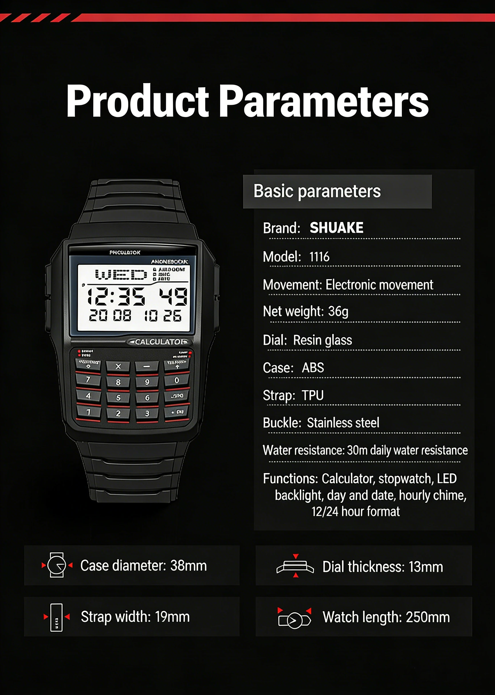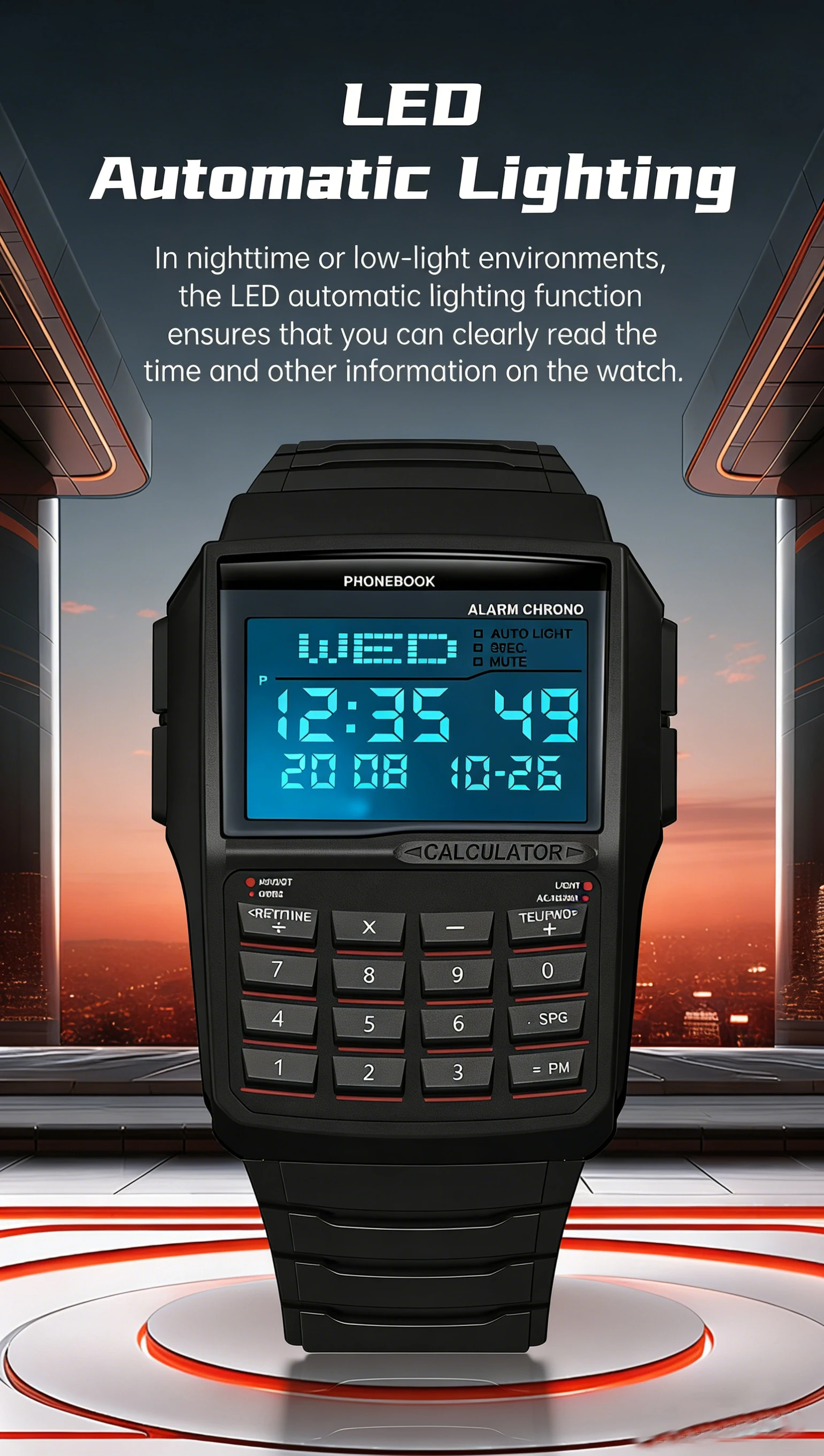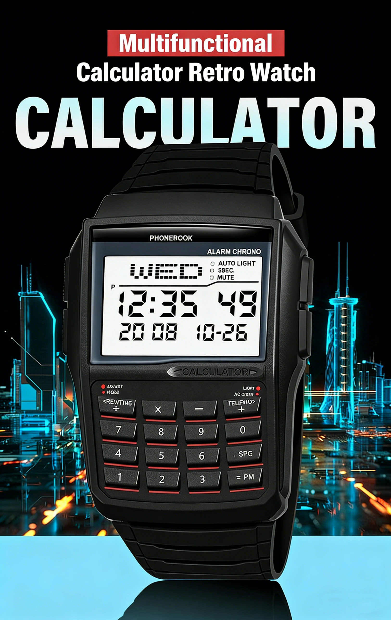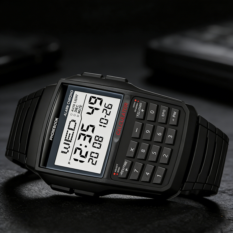2026 Multi functional Men's Calculator Watch Fashion Luxury LED Electronic Watch Digital Sports Watch Computer Style