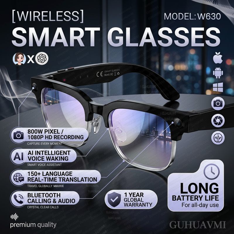 2026 New 32G Memory 800W 4K Camera Smart Glasses Men Photos&Videos Recording 120+Languages Translation Music Audio Glasses Women