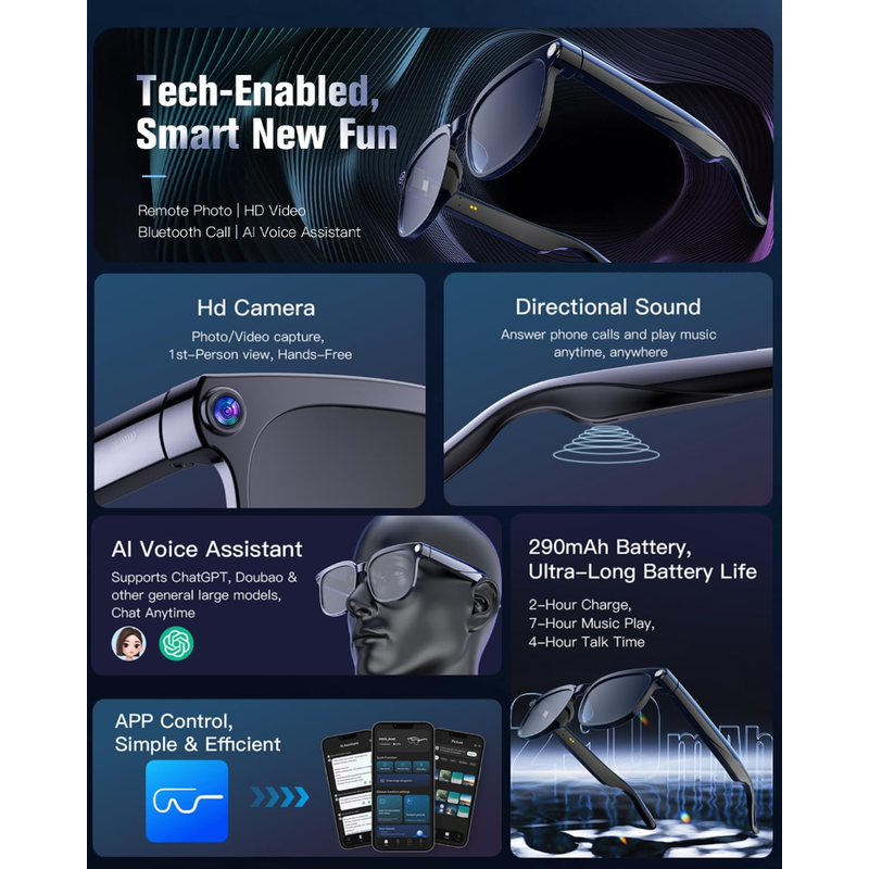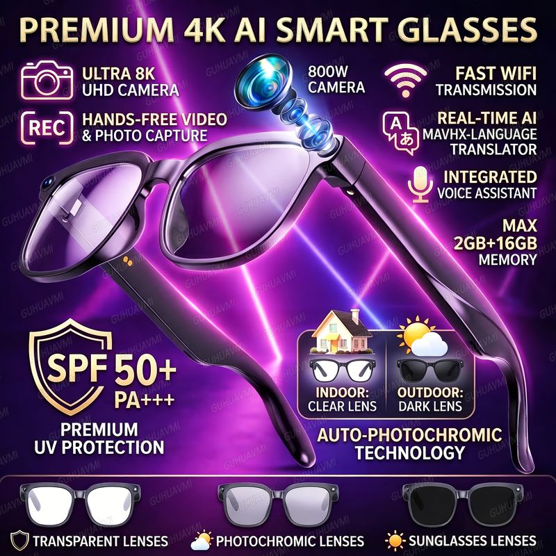2026 New 4K 8MP HD Camera Smart Glasses Men 150+Language Translation ChatGPT Music Photos &Video Bluetooth Call AI Glasses Women