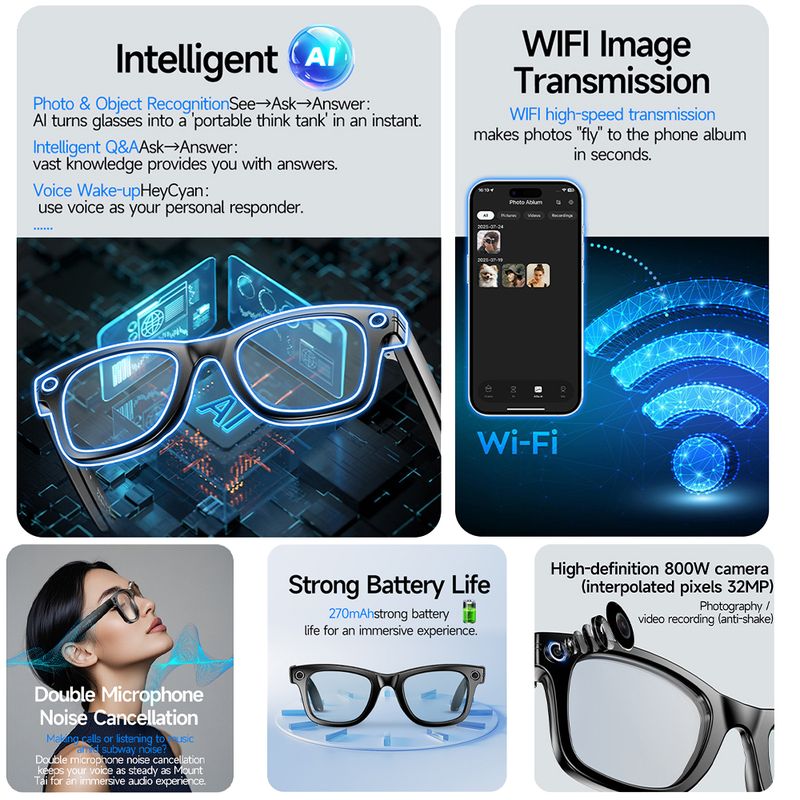 2026 New 800W AI Camera Smart Glasses Color-Changing Men Translation Glasses Waterproof Call Photo Video Recording Sunglasses