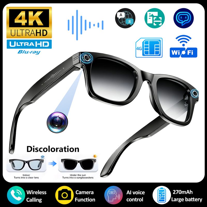 2026 New 800W AI Camera Smart Glasses Color-Changing Men Translation Glasses Waterproof Call Photo Video Recording Sunglasses