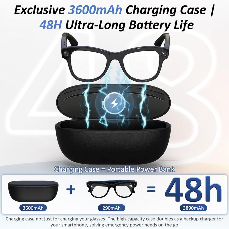 2026 New 800W Camera 3600mAh Portable Charger Smart Glasses 100+language Translation Bluetooth Call Music Player AI Chat Glasses