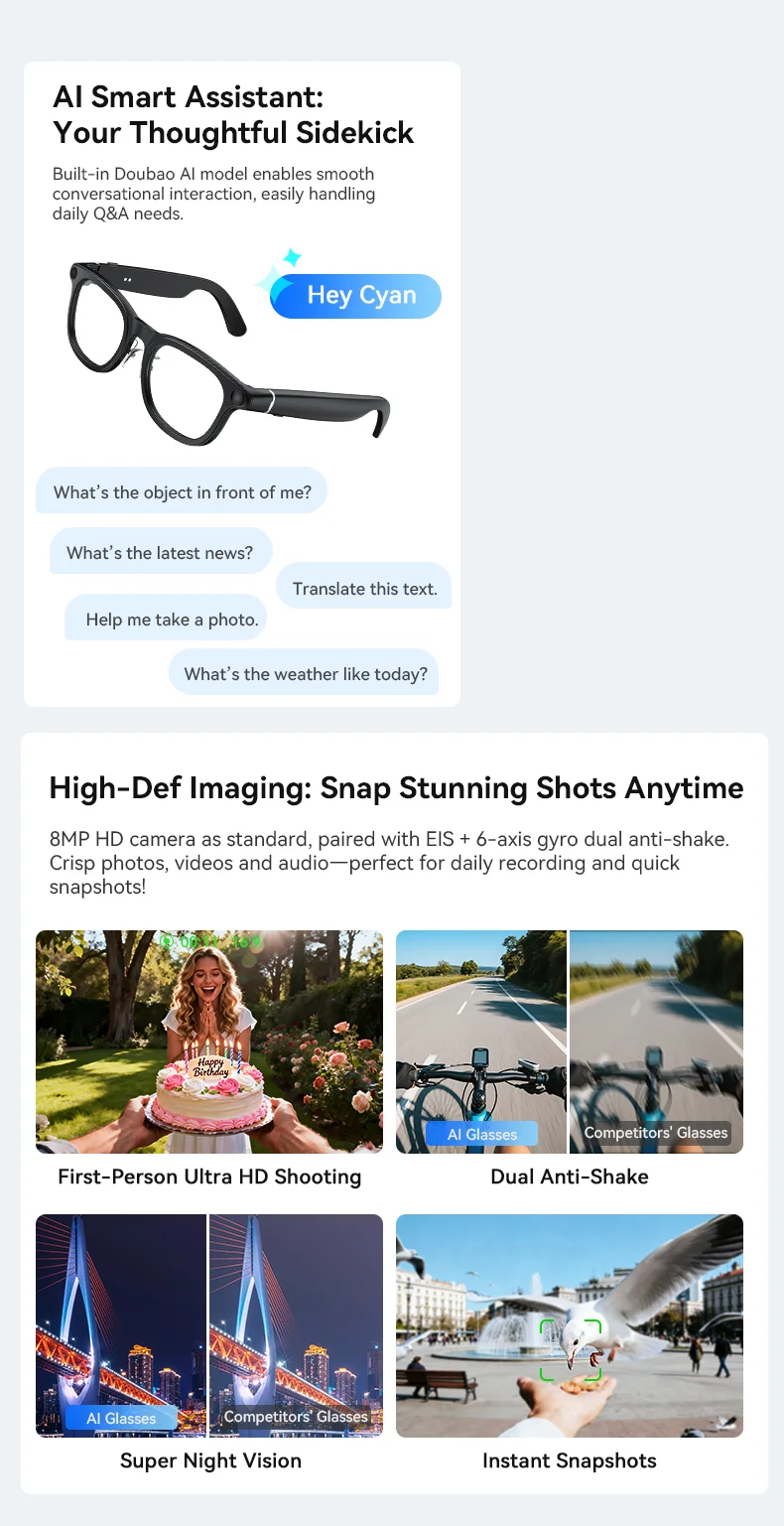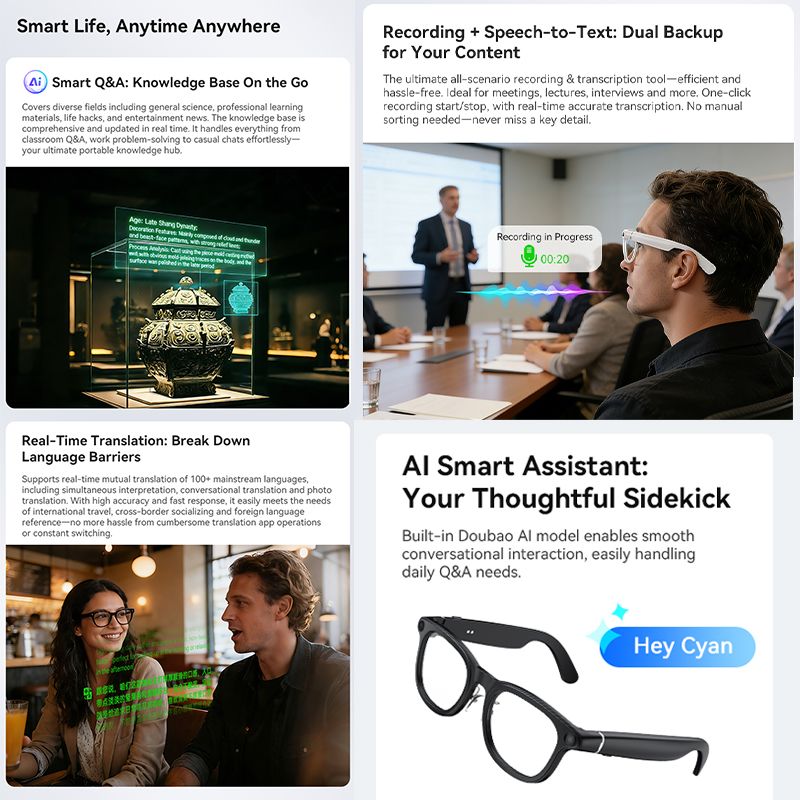 2026 New 800W Camera HD Clear Smart Glasses 130+ languages Translation Bluetooth Call Music Player AI Chat-gpt Smart Glasses