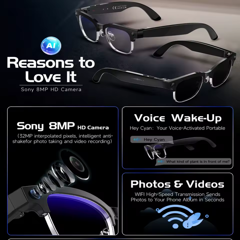 2026 New 800W HD AI Smart Glasses Video Recording Photo Multifunction WIFI Music ChatGPT Call Translation Sports Camera Glasses