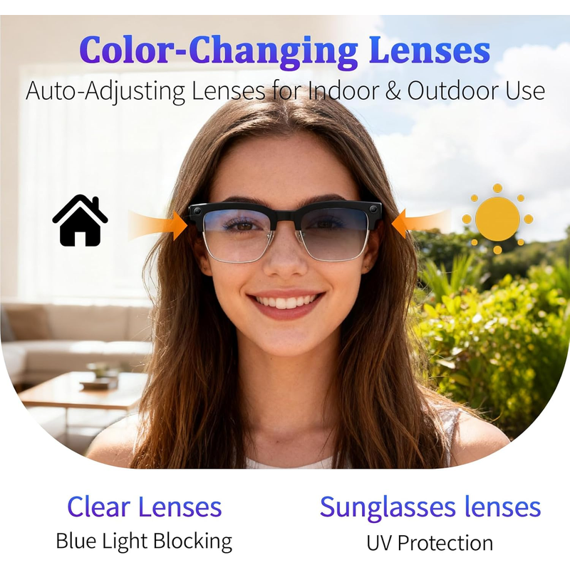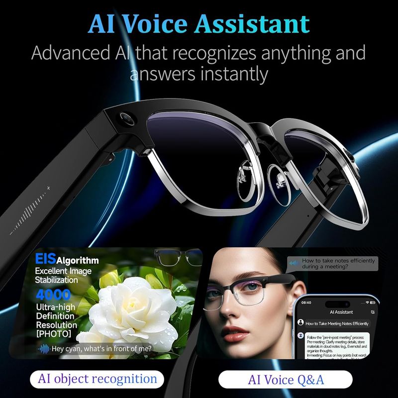2026 New 800W Upgrade Smart Glasses With Camera Video Recording AI Photo Recognition Bluetooth Call Translation Voice Sunglasses