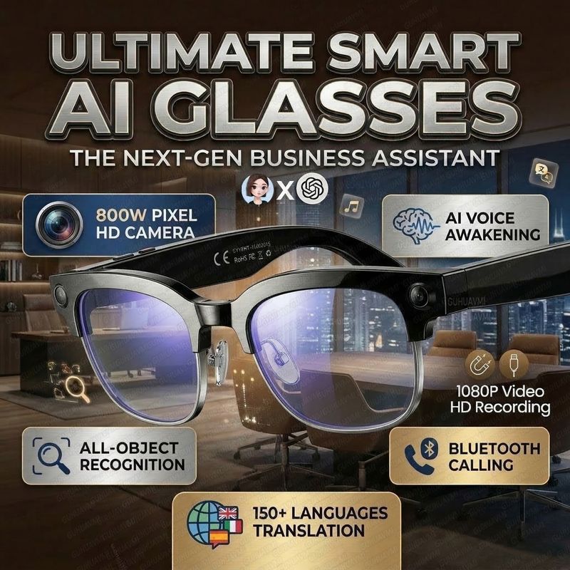 2026 New 8K HD AI Smart Glasses Men Chat GPT 8MP Camera Bluetooth Call AI Translation Voice Assistant Control Sunglasses Women