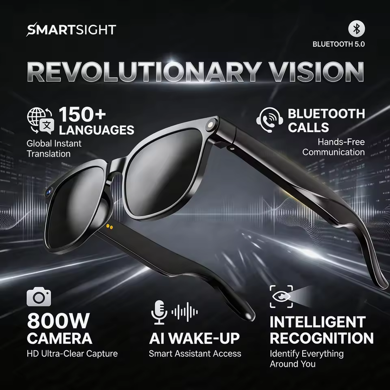 2026 New AI Smart Glasses Translation 8MP HD Camera 4K Shooting Image Bluetooth Call Recording Music Smart Sunglasses Men Women