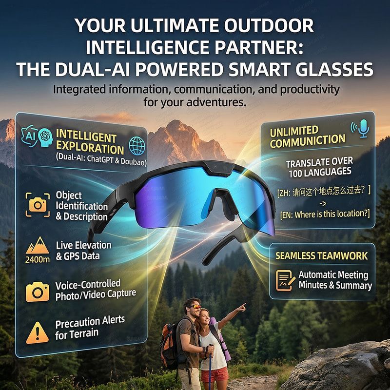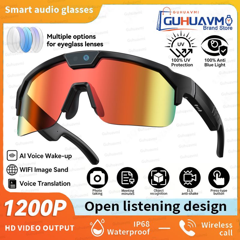 2026 New AI Smart Sports Glasses with 1200P Camera 4k Anti-Shake AI Voice Translator Bluetooth Call Dual Mic Audio Sunglasses