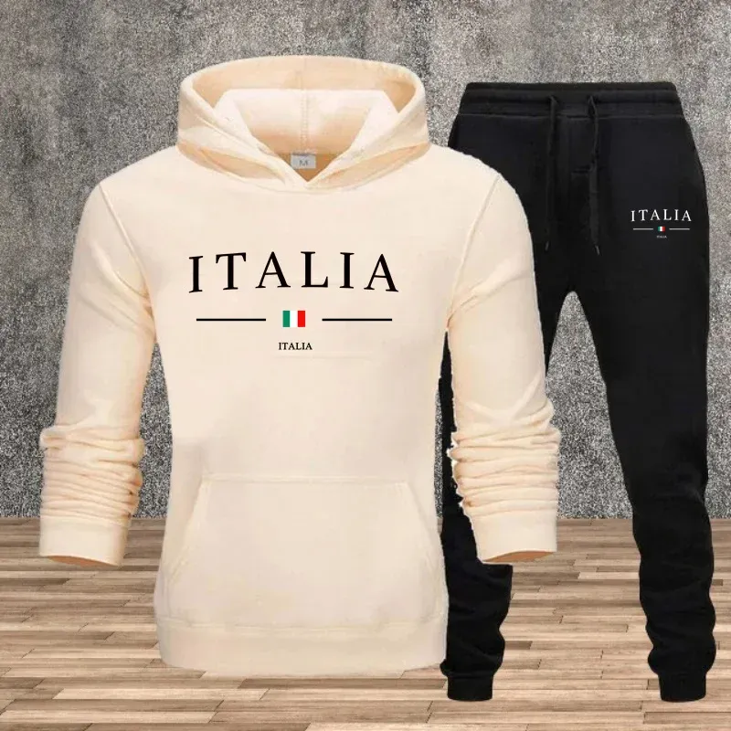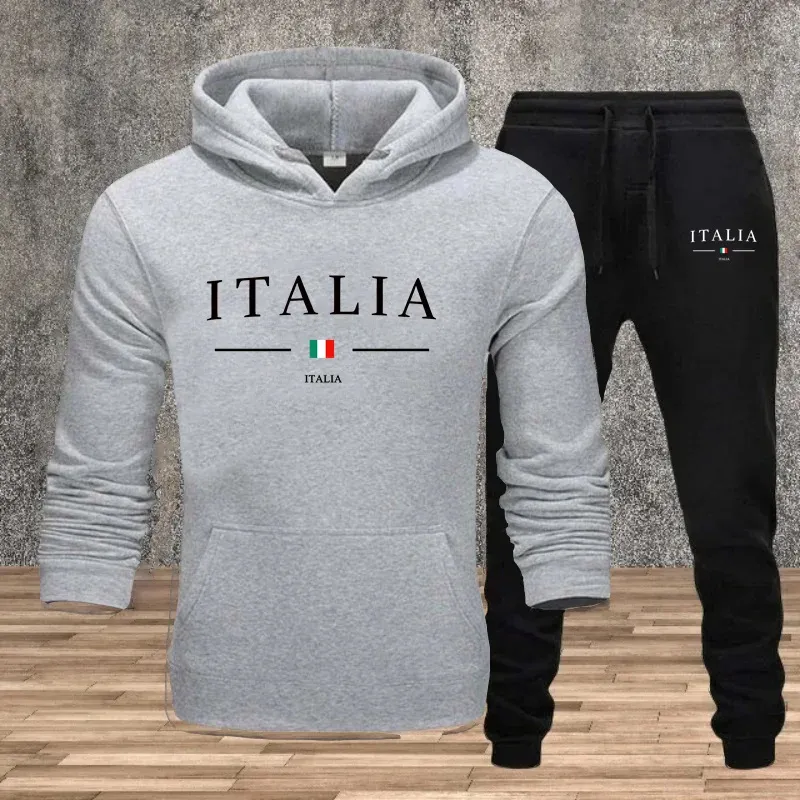 2026 New Arrival Men's Tracksuit Hoodies Sweatpants 2pcs Set Italy Fashion Print Sweatshirt Sportswear Male Daily Casual Outfits