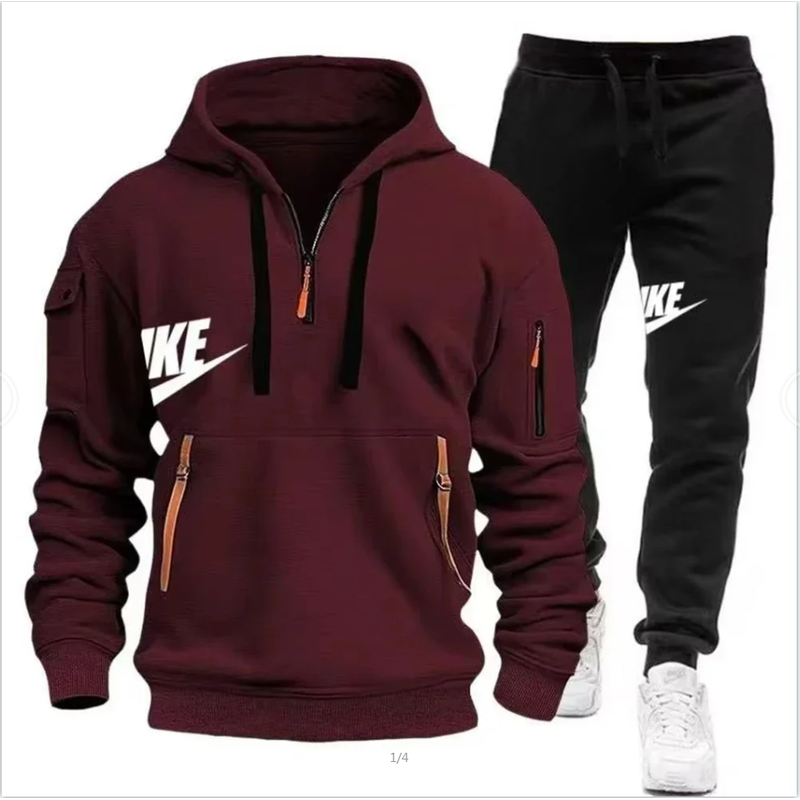 2026 New autumn and winter men's long-sleeved pullover hoodie + pants 2-piece fashionable outdoor running men's sportswear set