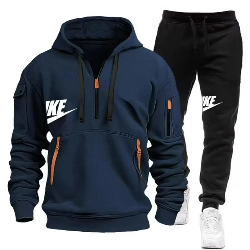 2026 New autumn and winter men's long-sleeved pullover hoodie + pants 2-piece fashionable outdoor running men's sportswear set
