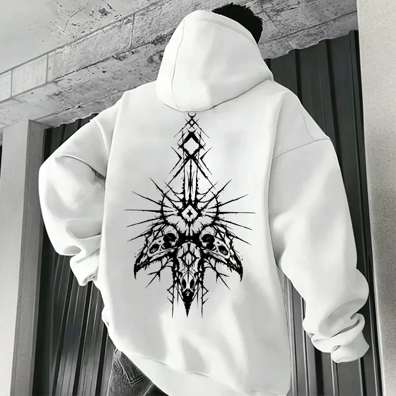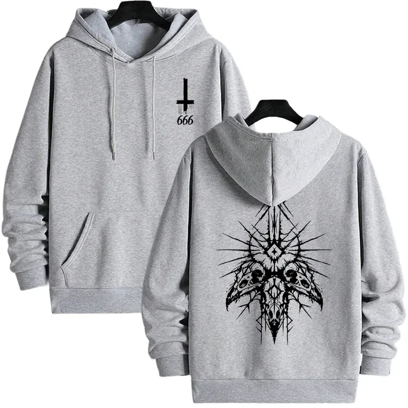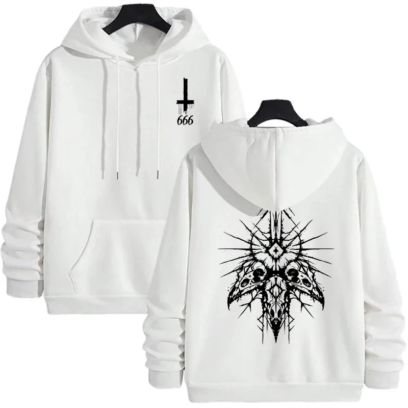 2026 New Autumn Winter Male Fashion Casual Hoodie with 666 Cross Man Streetwear Hooded Sweatshirt Gothic Demonic Theme Print Top