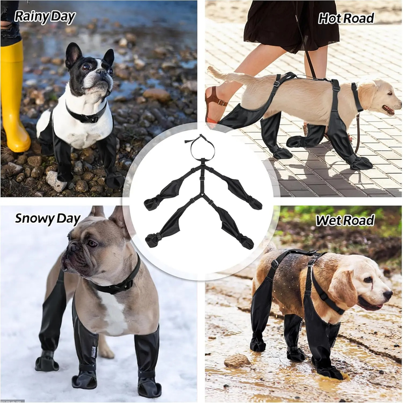 Dog Suspender Boots Waterproof Pet Shoes Dog Paw Protectors Adjustable Dog Rain Snow Booties for Outdoor Walking Running Hiking