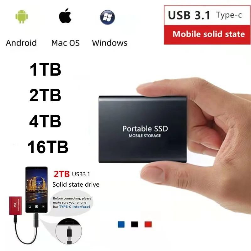 2026 New Efficient Portable SSD 1/2/4/16 TB High Cost Performance External Hard Mobile Solid State Drive For Phone/Loptop/Mac/PC