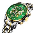 2026 New Green Roman Quartz Watches Man Business Stainless Steel Skeleton Top Brand reloj hombre
