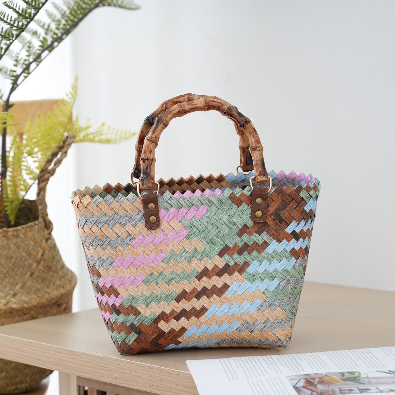 2026 New Handwoven Bamboo Handle Tote Bag Women's Retro Handbag Casual Simple Sle No oulder Strap Open Top Soft Bag