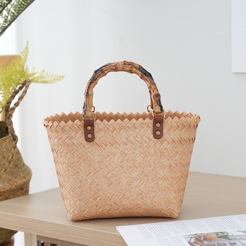 2026 New Handwoven Bamboo Handle Tote Bag Women's Retro Handbag Casual Simple Sle No oulder Strap Open Top Soft Bag