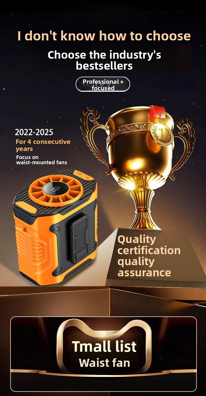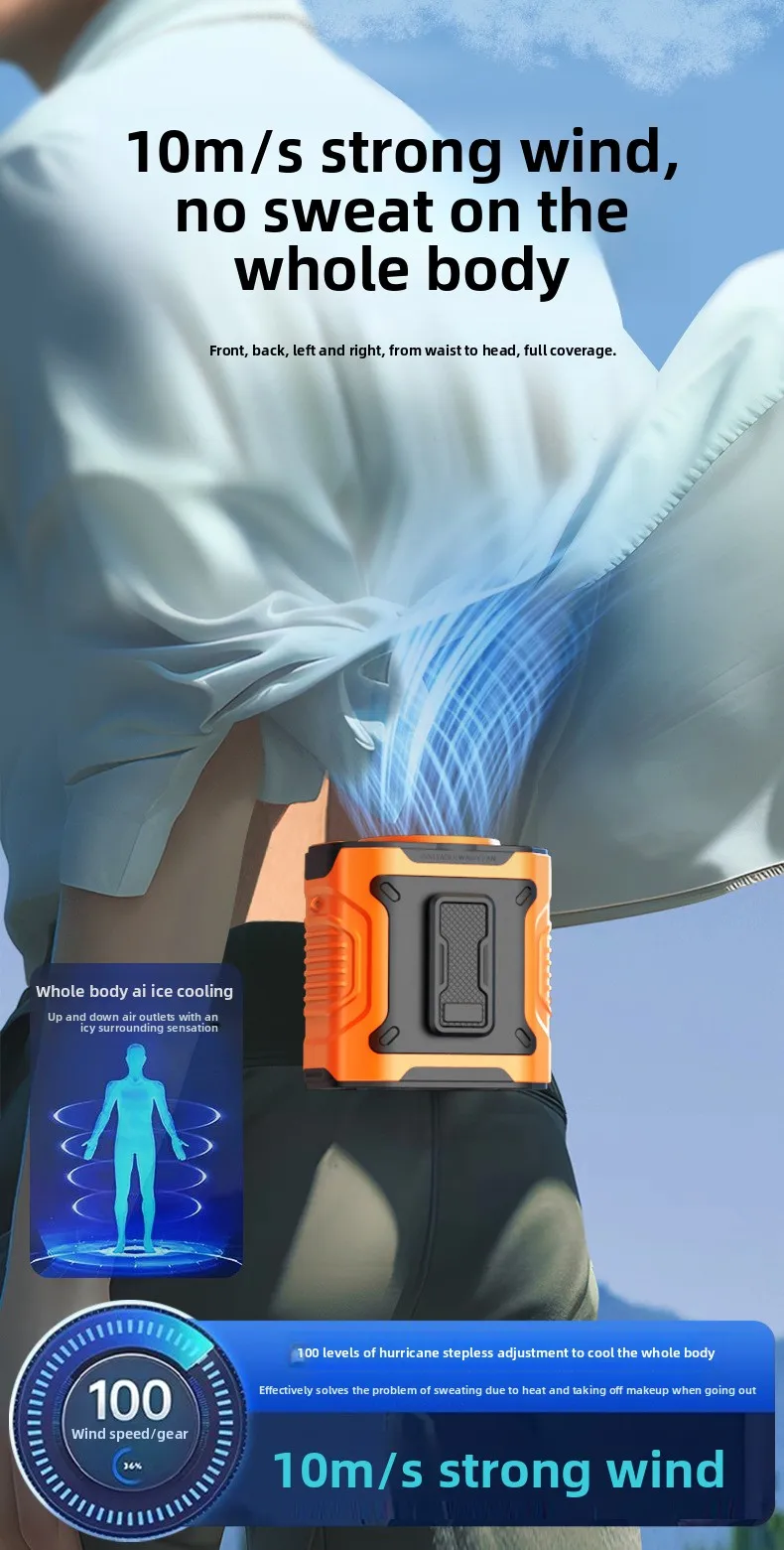 2026 New High Speed Waist Hanging Fan, Portable Personal Cooling Fan with Digital Display, Clip On Fan for Outdoor Construction