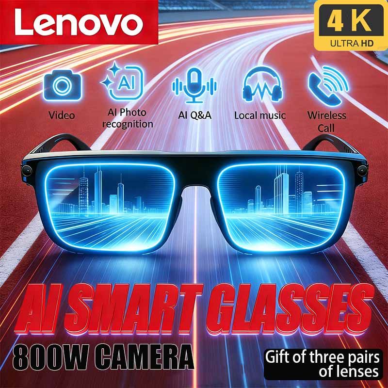 2026 New Lenovo AI Smart Glasses 800W HD Camera Real-time Translation Call Music Recording Smart Glasses For Outdoor Travel