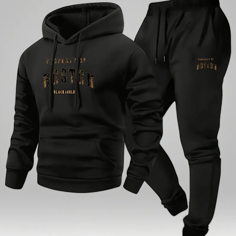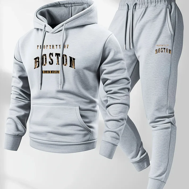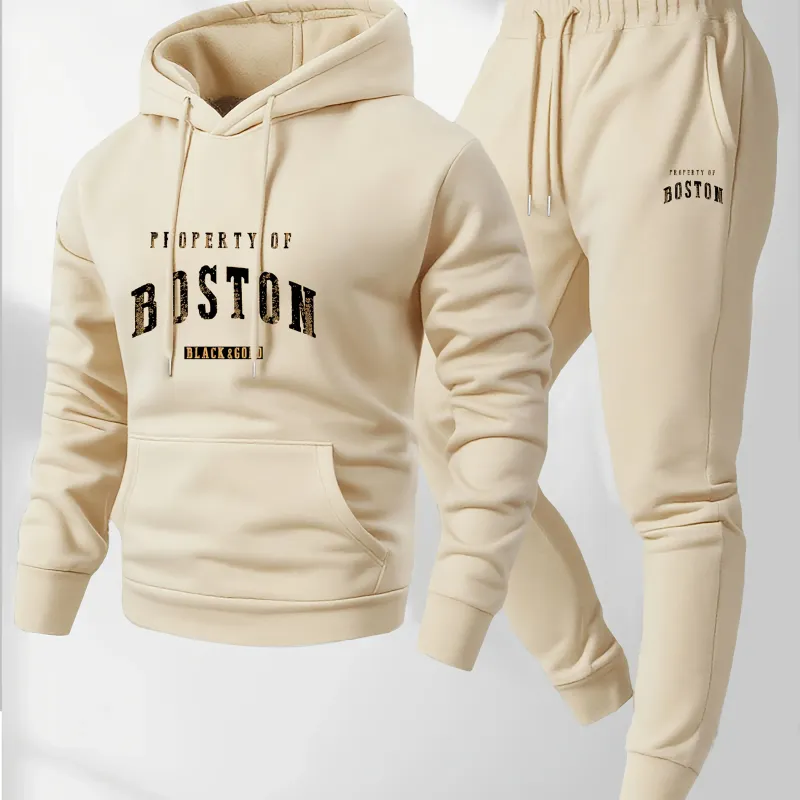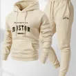 2026 New Men's Boston Print Hooded Sweatshirt and Sweatpants Soft and Comfortable Sweatpants Autumn and Winter Set