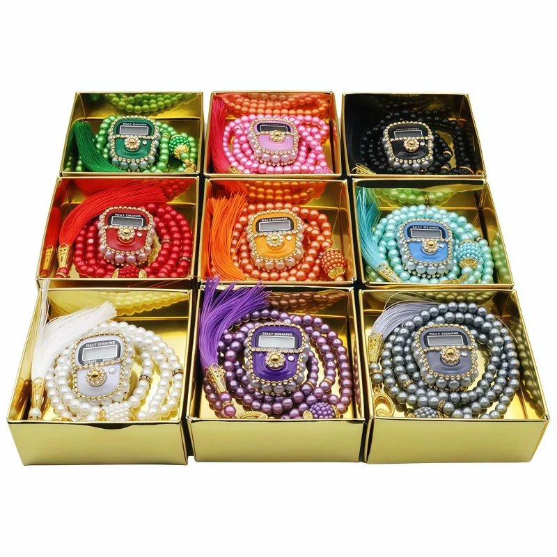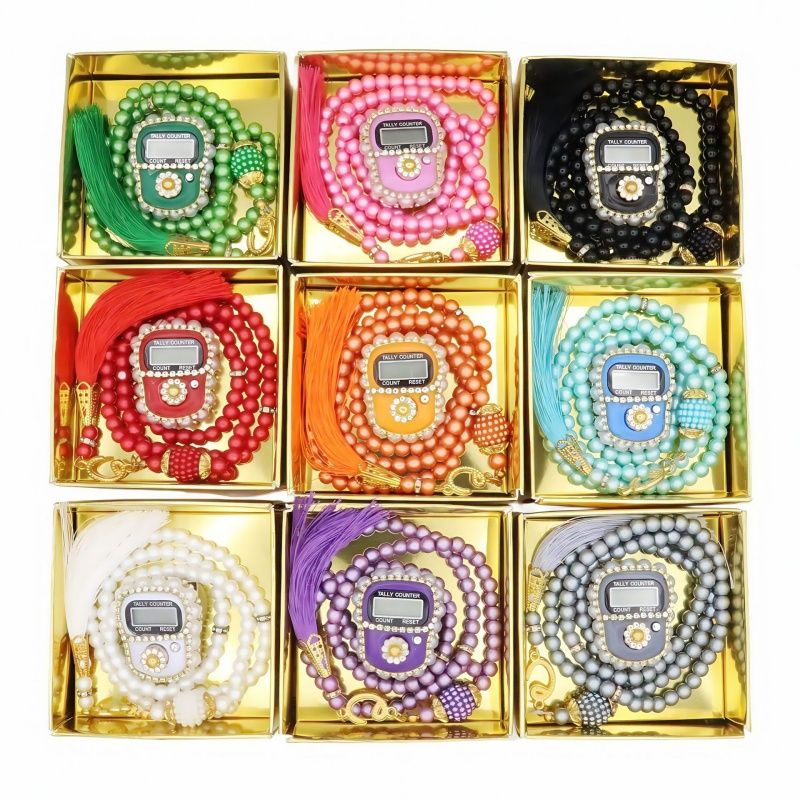 ♥Unique Design♥ - Available in a variety of colors and patterns, many based on traditional patterns, the style is unique. The pearl-like rosary is made of top-notch Turkish durable material. The rosary is heavier and shinier than other rosaries and looks luxuriously designed. The digital bead counter is made with a digital screen and is small and compact. It is made of sparkling gemstones and looks elegant and stylish.