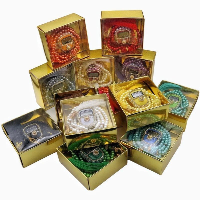 2026 New Reset Finger Counter Prayer Bead Set with High End Gift Box,99 Beads Bracelet Combination Set,Ramadan Prayer Bead Gift