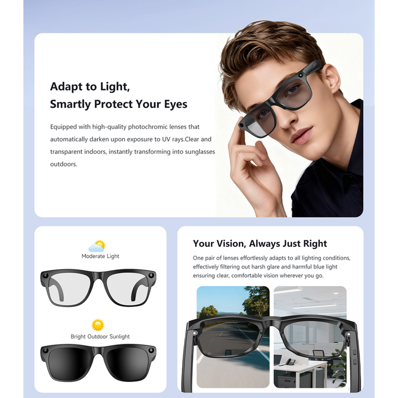 2026 New Smart AI Glasses 800W Shooting Camera HD Photo Video Voice Call Translation Waterproof Bluetooth AI Motorcycle Glasses