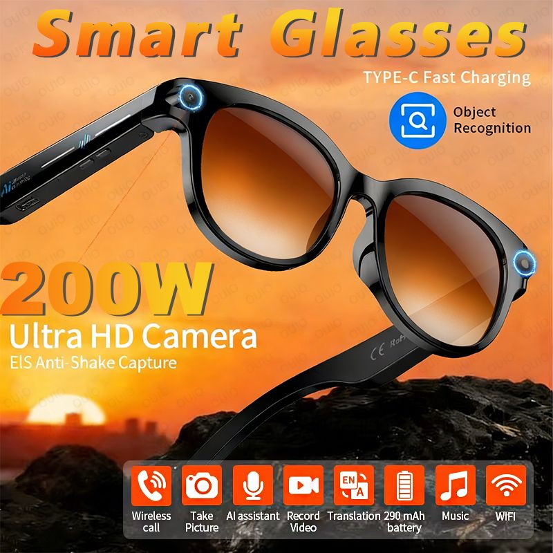 2026 New Smart Glasses 200W HD Camera ElS Anti-Shake Capture Video Record AI Q&A Music Translation Wireless Call Smart Glasses