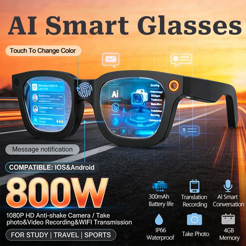 2026 New Smart Glasses E02C 800W HD Photo Video OpenAI Record Translation Touch Photochromic Lenses Bluetooth Call Smart Glasses