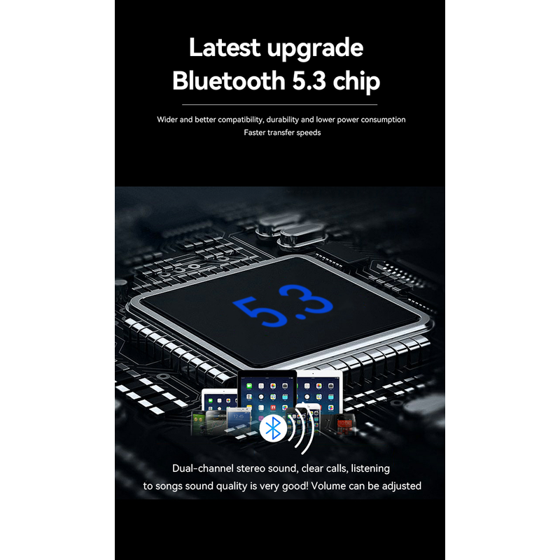 Bluetooth 5.3 Ultra-Connected: Stable pairing, crystal-clear hands-free calls & immersive open-ear surround sound – no more tangled wires or stuffy earbuds!