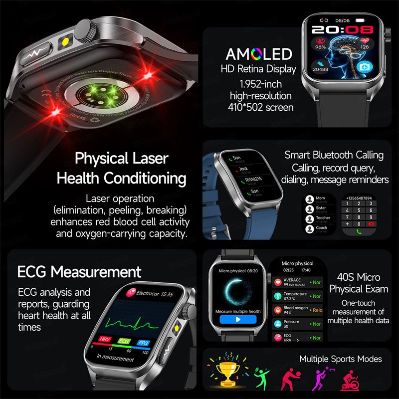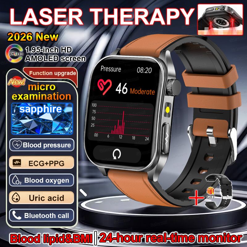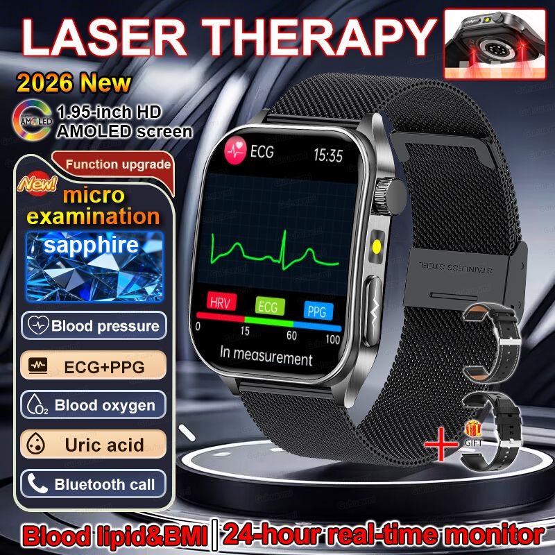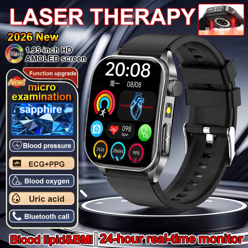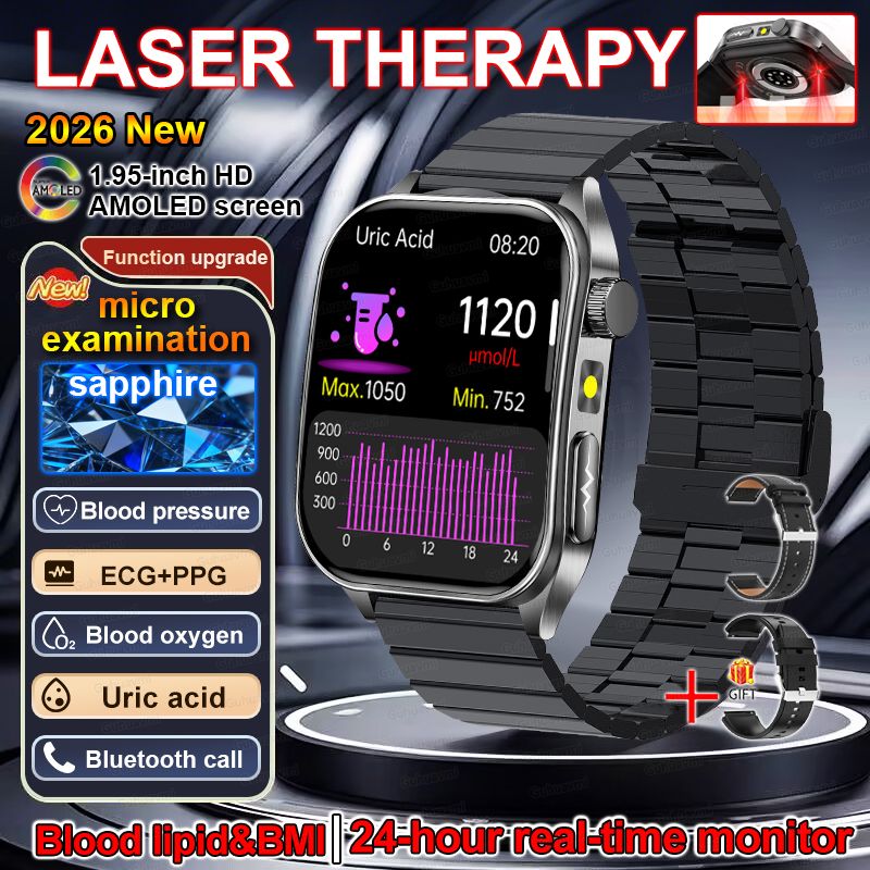 2026 New Smart Watch laser therapy health conditioning Blood oxygen Pressure Uric Acid Blood lipid ECG Smartwatch for Man Women
