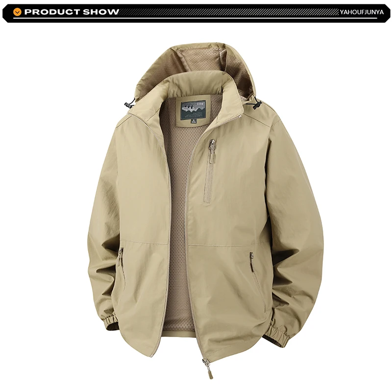 2026 New Spring Men Outdoor Thin Hooded Brand Windbreak Jacket Men Autumn Outwear Casual Fashion Solid Jacket Male Coats Tops