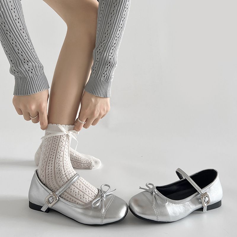 2026 New Spring Vintage Women Ballet Flats Shoes Comfort Round Toe Soft Sole Shoes Elegant Butterfly-knot Dress Grandma's Shoes