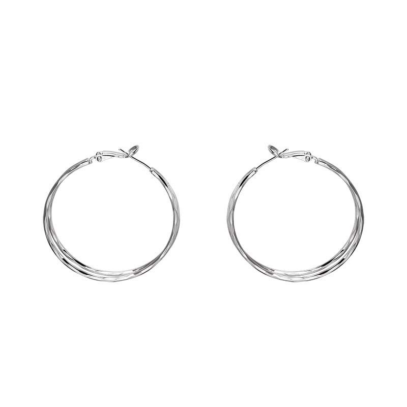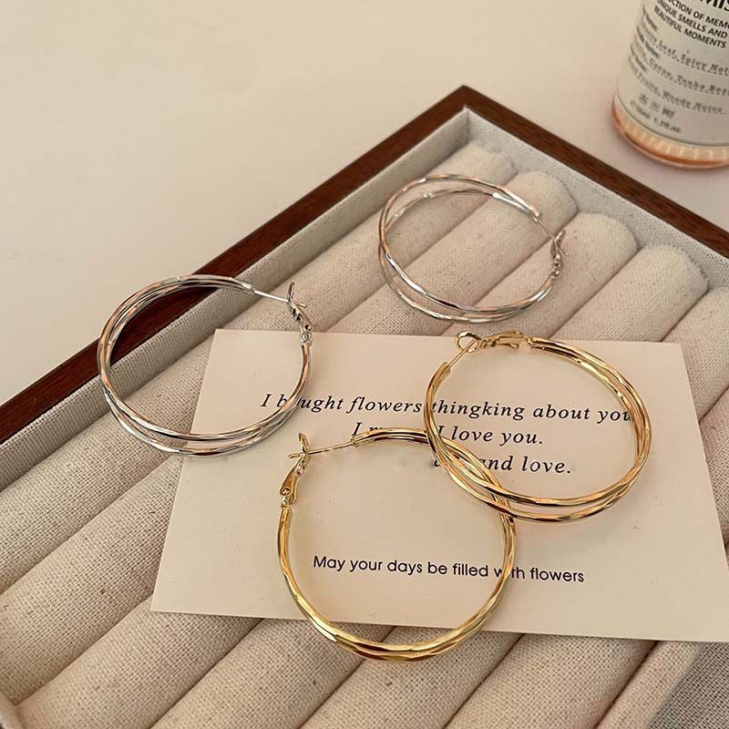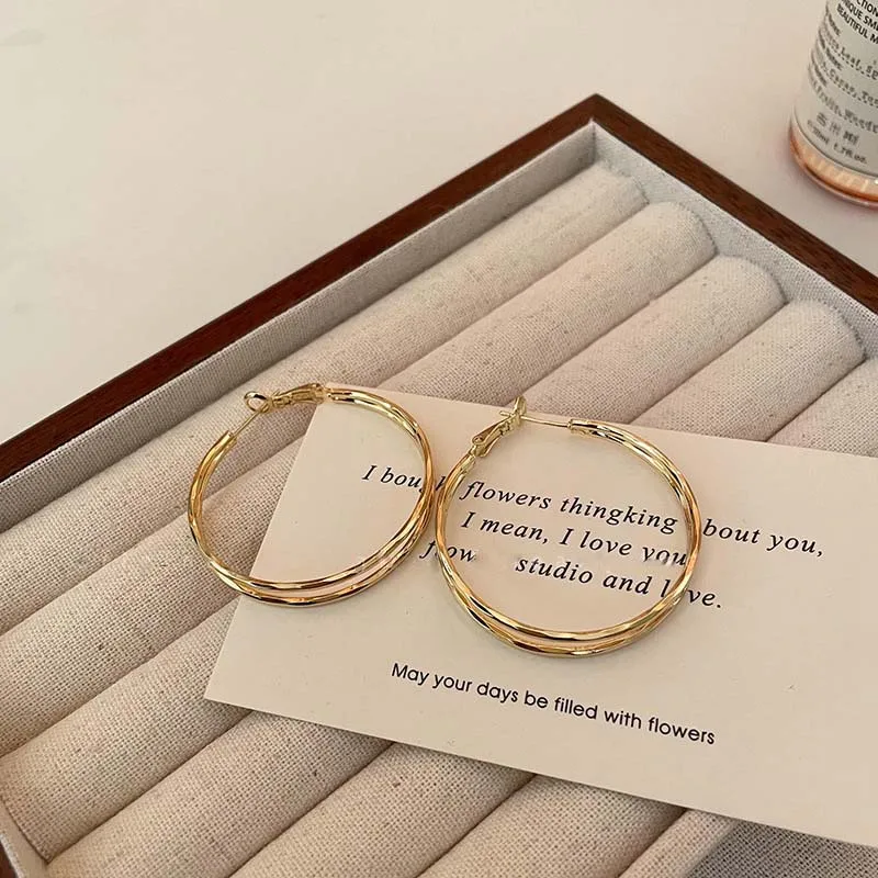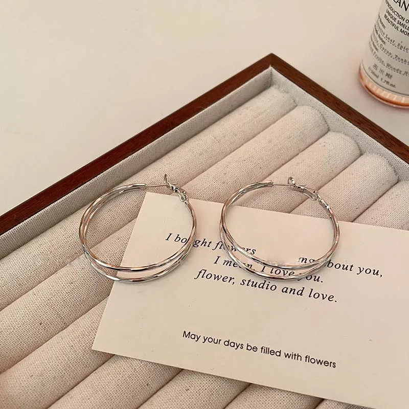 2026 New Trendy Silver Color Double Layer Circle Hoop Earrings For Women Exaggerated Metal Layer Round Earrings Jewelry Gift