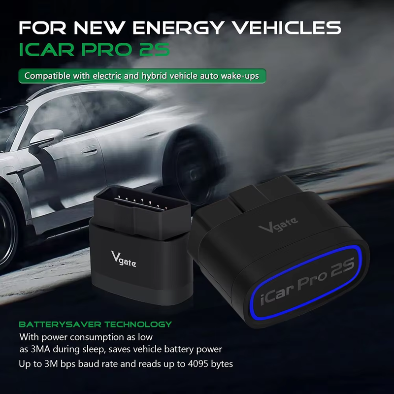 Vgate ICAR PRO 2S supports 12V 16PIN OBD2 car & EV cars, but for EV Cars only supports for BYD and for Tesla.