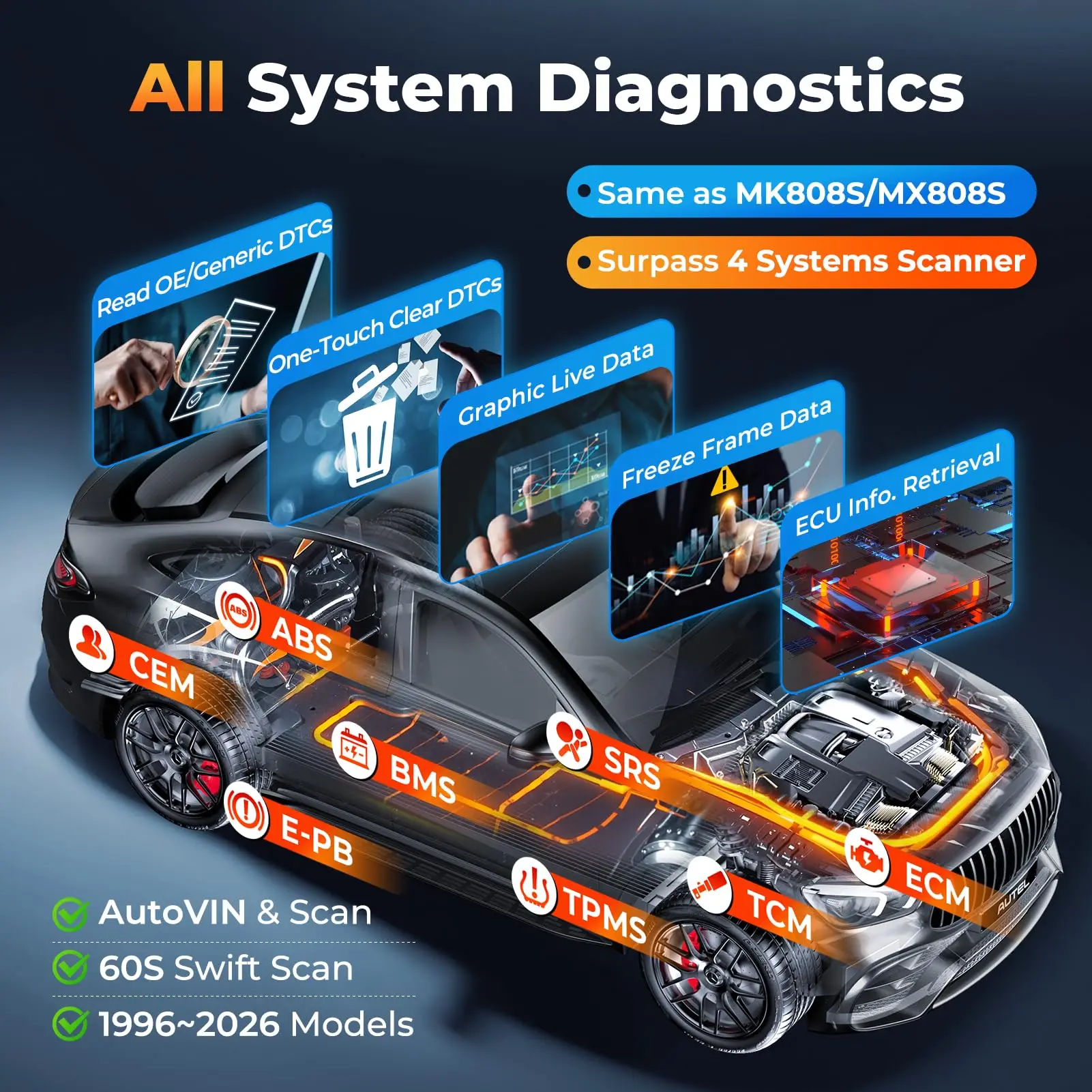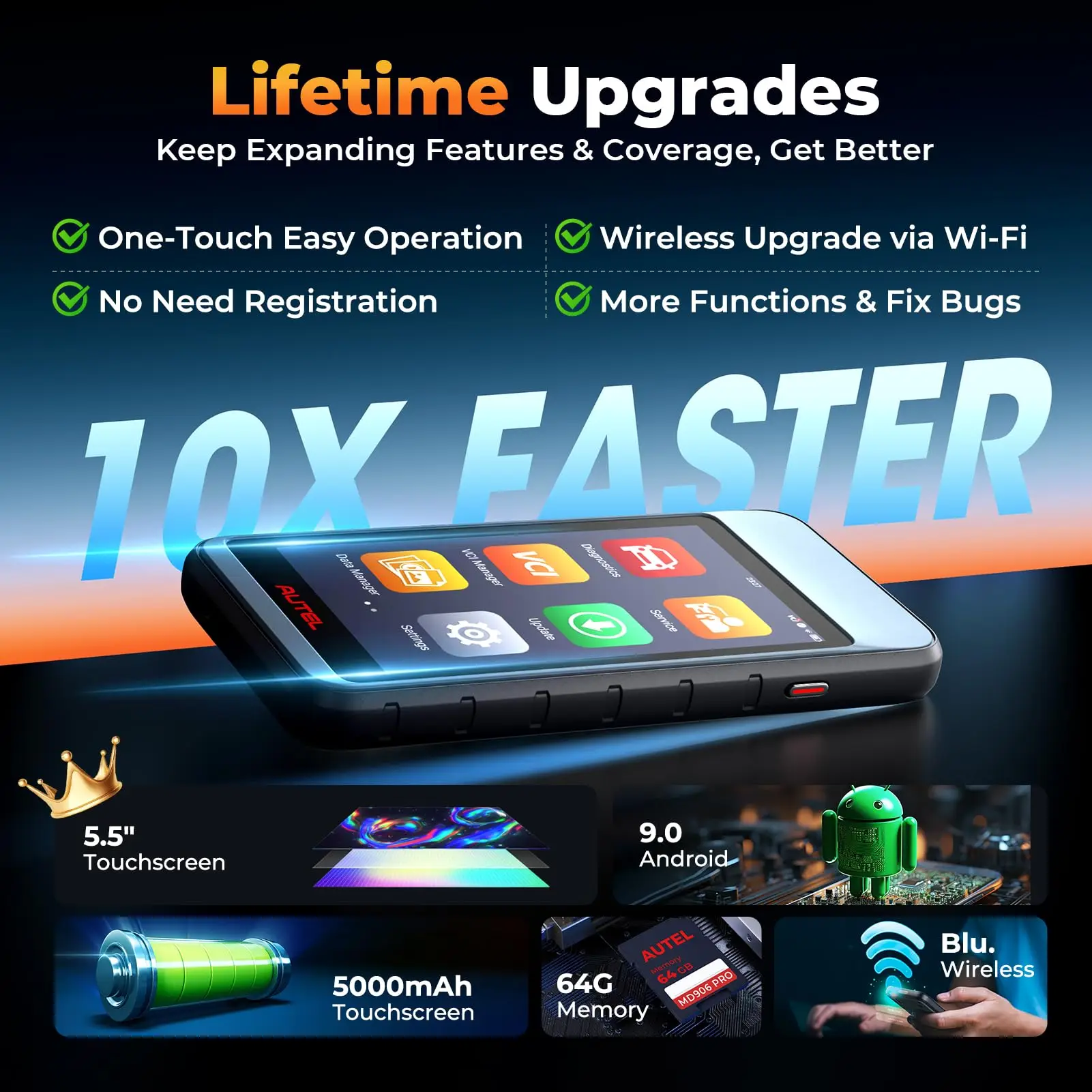10X Faster Auto VIN & Scan, 8000+ DTC Library