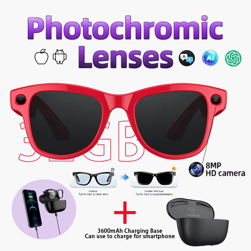 2026 Smart AI Glasses 1080P HD Camera M02 Ultra ChatGPT 3600mAh Charging Case Power Bank 32GB Translation Music Video Sunglasses