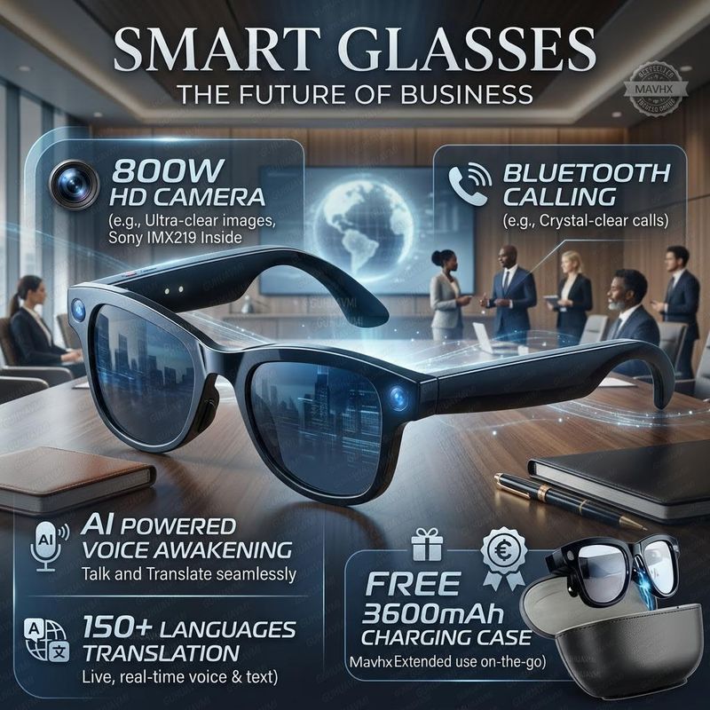 2026 Smart AI Glasses 8MP 4K Lens 4K POV Video Camera 150+Language Translation AI Voice Assistant Open-Ear Bluetooth Glasses Men