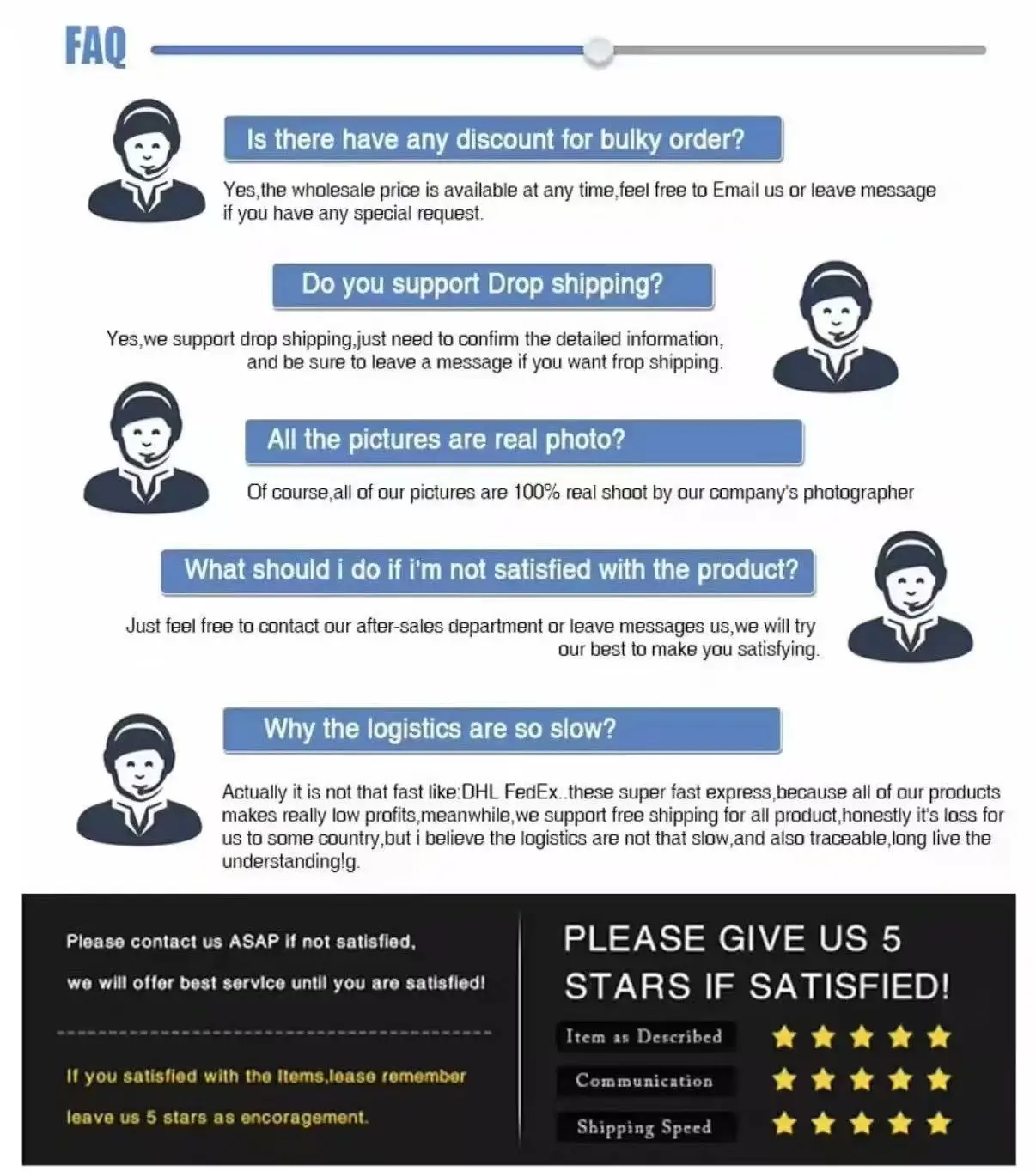 If you receive a damaged, defective, or incorrect item, please contact us within 7 days of delivery and provide clear photos of the product and packaging. We will arrange a replacement or full refund at no additional cost.