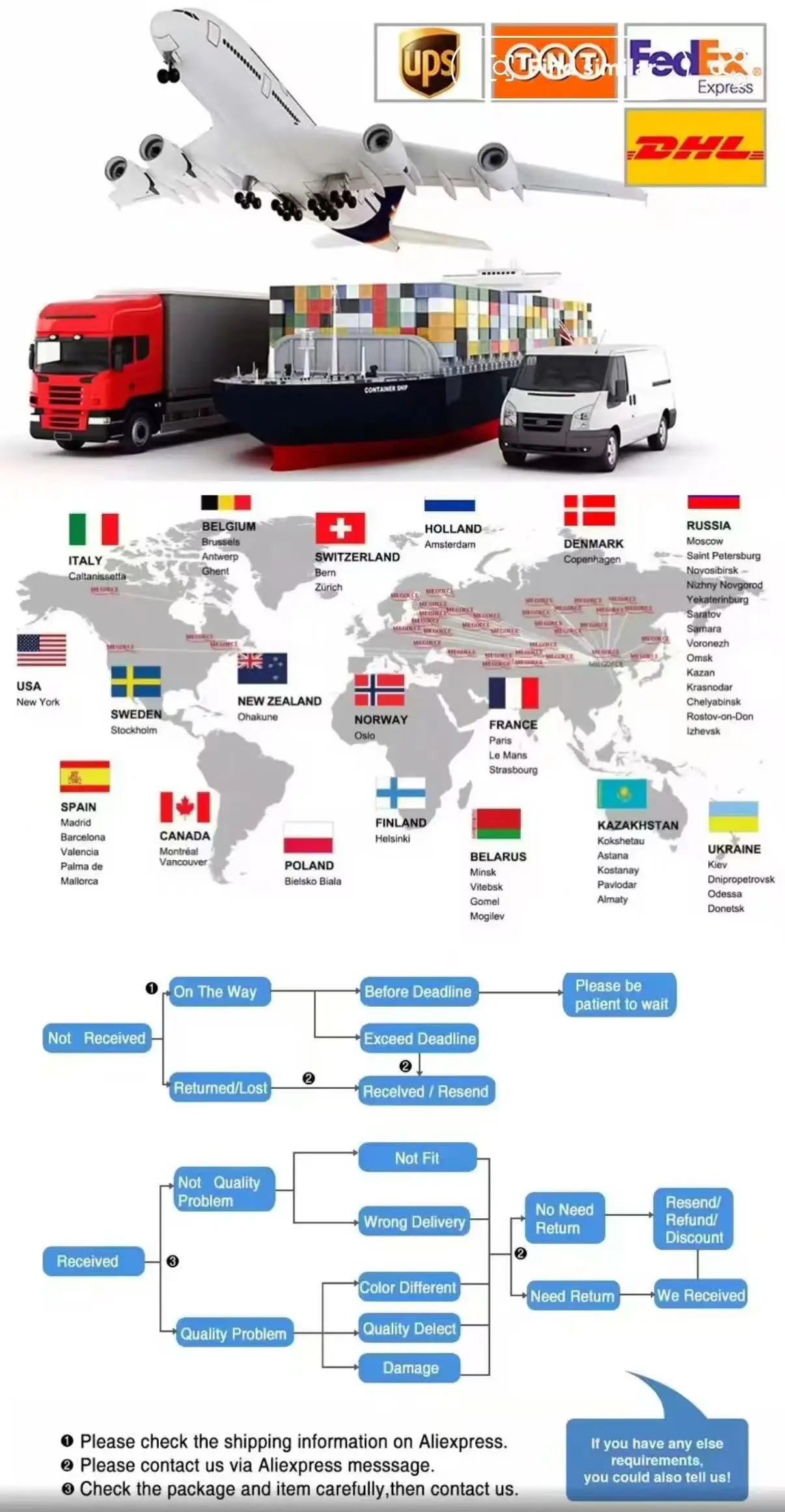 If your order is delayed, lost, or arrives damaged, please contact us within 7 days of the expected delivery date. We will work with the shipping carrier to resolve the issue as quickly as possible.