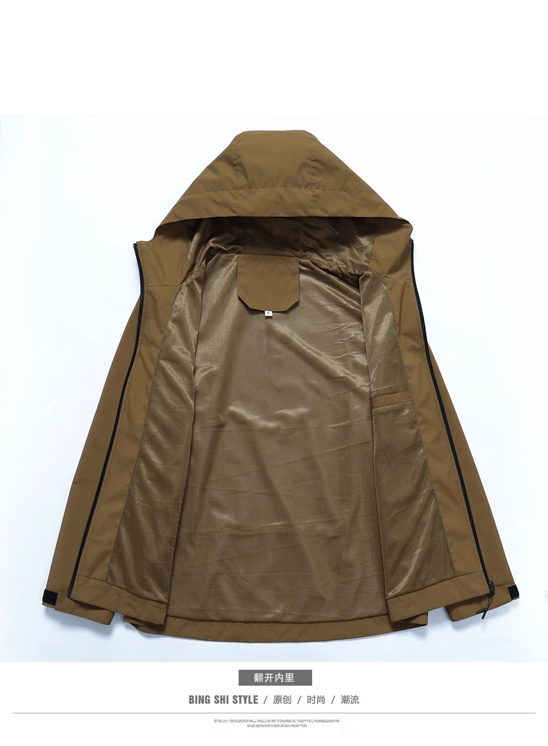 2026 Spring New Arrival Plus Size Men's Casual Fashion Printed Jacket, Outdoor Waterproof and Windproof Zippered Trench Coat