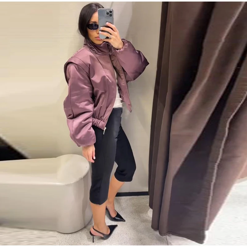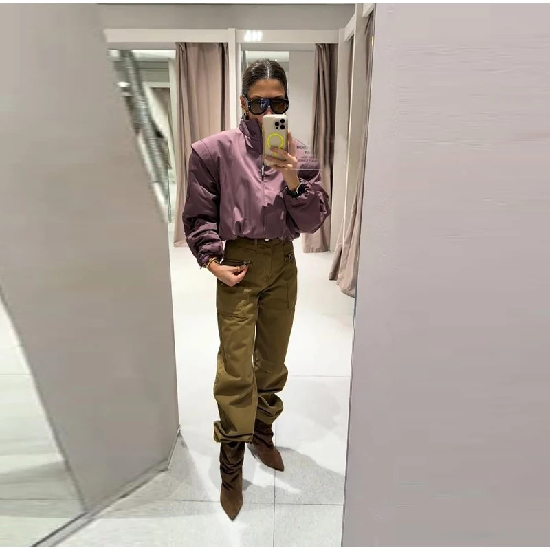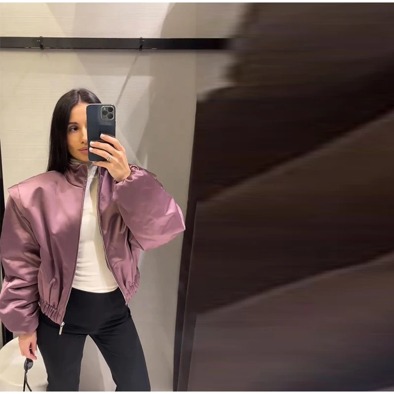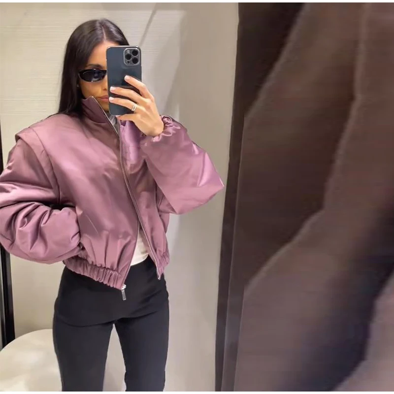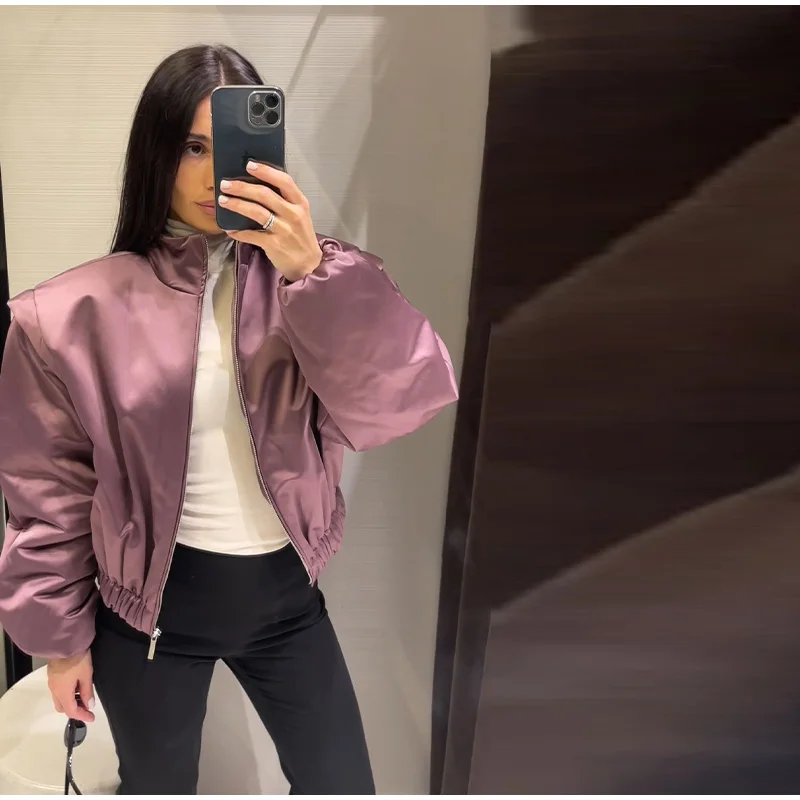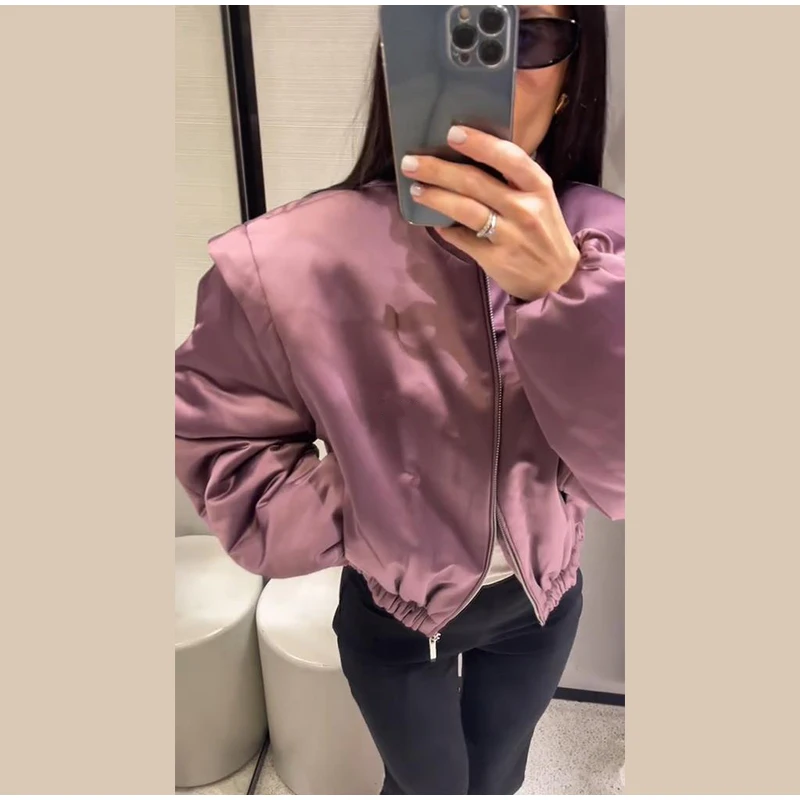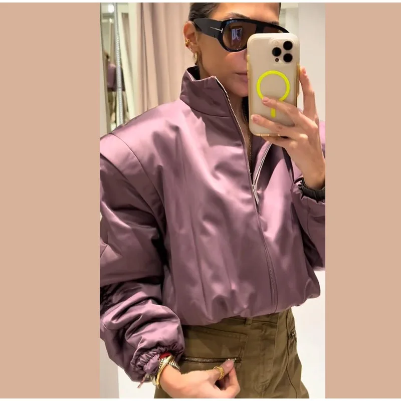 2026 Spring New Long Sleeve Bomber Jacket For Women Casual Zipper Stand Collar Cropped Coats Lady Solid Bike Street Chic Tops